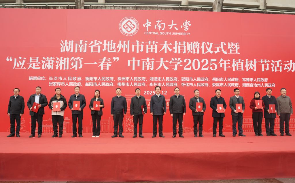 本网讯 3月12日,在第47个植树节到来之际,湖南省市州苗木捐赠仪式暨中南大学2025年植树节活动在潇湘校区举行。湖南省14个市州领导、林业部门负责同志,中南大学校领导易红、李建成、黄健陵、何旭辉以及师生代表参加现场活动。近年来,中南大学着力提升环境育人水平,打造全域花园式校园。2025年,学校将校园环境绿化品质提升工程列入十件民生实事,予以大力推进。日前,学校与湖南省14个...