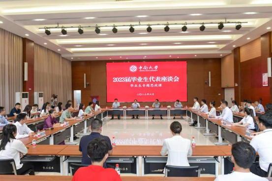 本网讯 6月14日,中南大学2023届毕业生座谈会在毓秀楼云麓阁举行,来自不同学院的本硕博毕业生代表分享自己的收获成长、心得感悟,校领导易红、陈翔、付刚华、何军共同聆听毕业生的成长故事,了解大家的学习、生活、就业情况。毕业感想:我在中南的收获与成长座谈会上,12位毕业生代表先后发言,感恩母校的培养,畅谈在中南的成长与收获,并提出对母校的建议与期待。温暖、感动与帮扶,是...