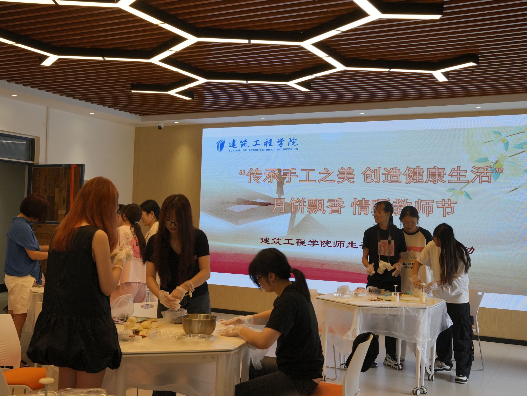 在这样一个特殊的日子里,月饼香气飘散,飘进每一个人的心中,不仅让师生们体会到了手工制作的快乐,增强了师生的情感,更让传统的月饼文化在年轻一代中得以传承。