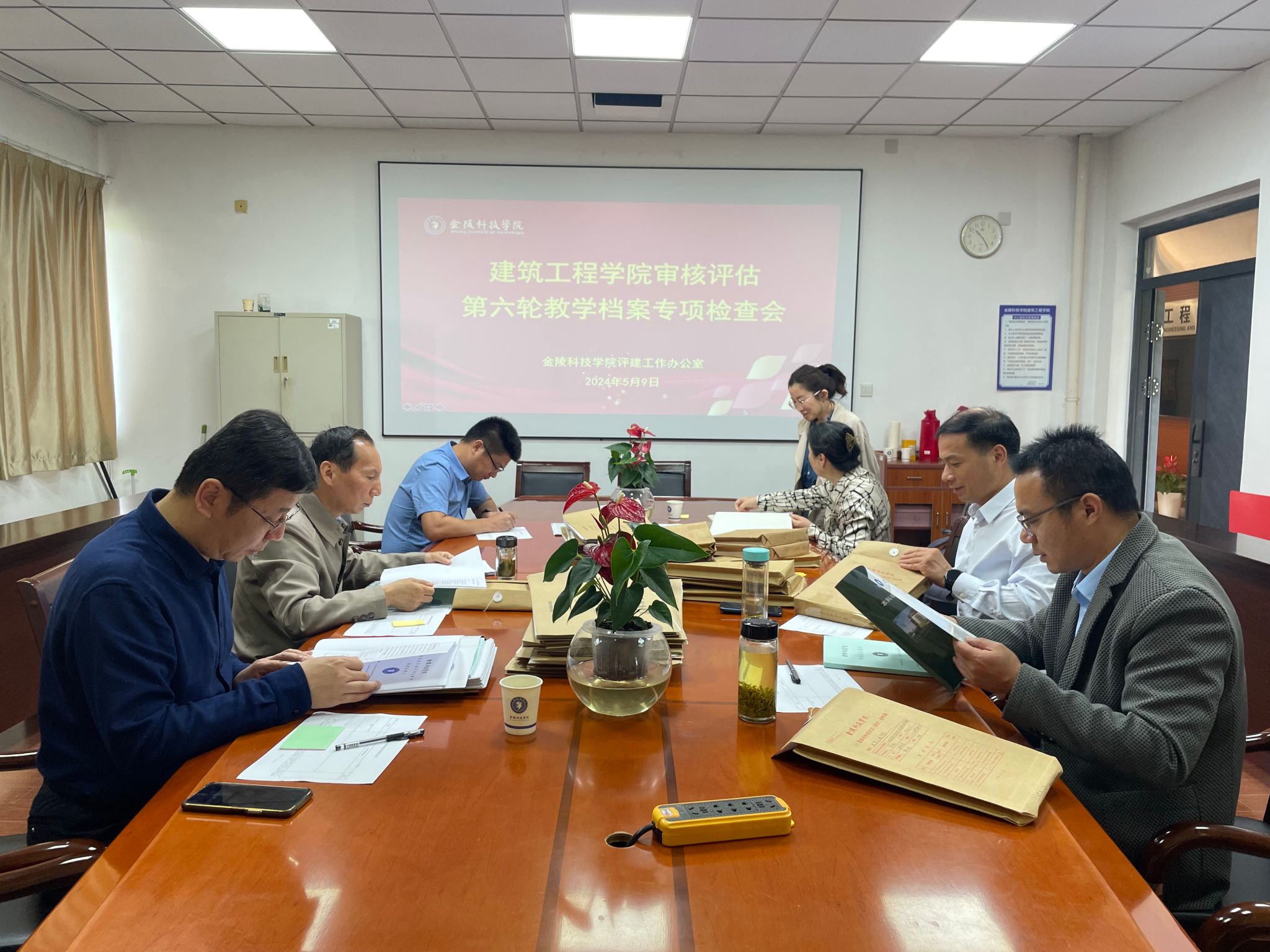 2024年5月9日,学校评估中心在工科楼B502会议室开展审核评估第六轮教学档案专项检查,检查专家组由教务处副处长刘旭明、校级督导宣卫红、陆秋林、机电工程学院副院长刘祥建、体育部副主任周敏、云顶集团副院长黄冬辉组成。本轮专项检查主要对我院2023-2024学年第一学期试卷和2022届、2023届本科毕业生毕业论文(设计)等档案进行专项检查。重点检查内容包括: