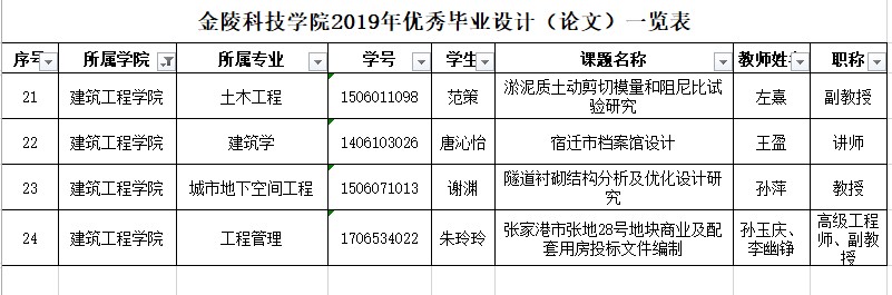 根据学校2019年毕业设计(论文)评优工作安排,我院可推荐4个单篇优秀毕业设计(论文)、1个团队优秀毕业设计(论文),考虑专业平衡,从选题质量、能力水平、撰写和规范、创新与成果四个方面12个打分点,从成绩为优秀的毕业设计(论文)中择优推荐。经过学校评选审核,我院获得2019届校级优秀的毕业设计(论文)如下: