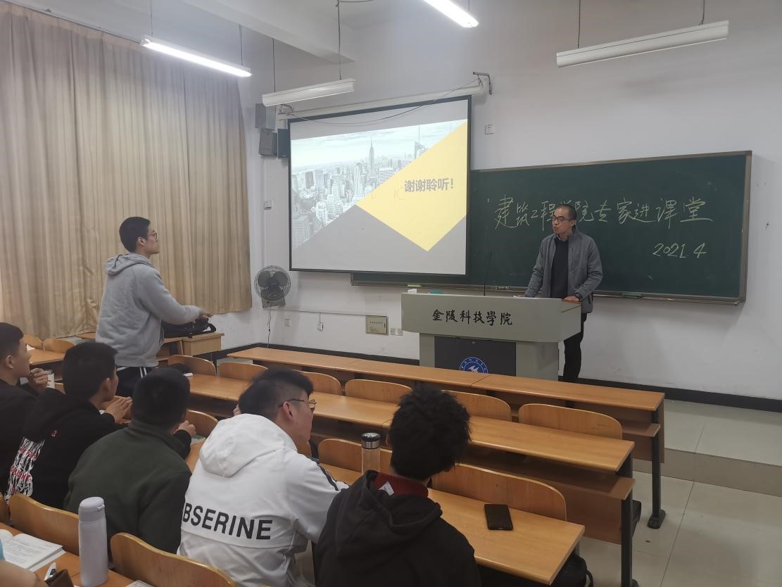 为促进产教融合,实现企业生产和课堂教学的无缝对接,4月8日上午,云顶集团邀请到了我院2001届校友、现为南京建科工程咨询有限责任公司总工程师的李争高级工程师走进《房屋建筑学》的课堂,我院学生带来一堂生动的民用建筑设计专题课。