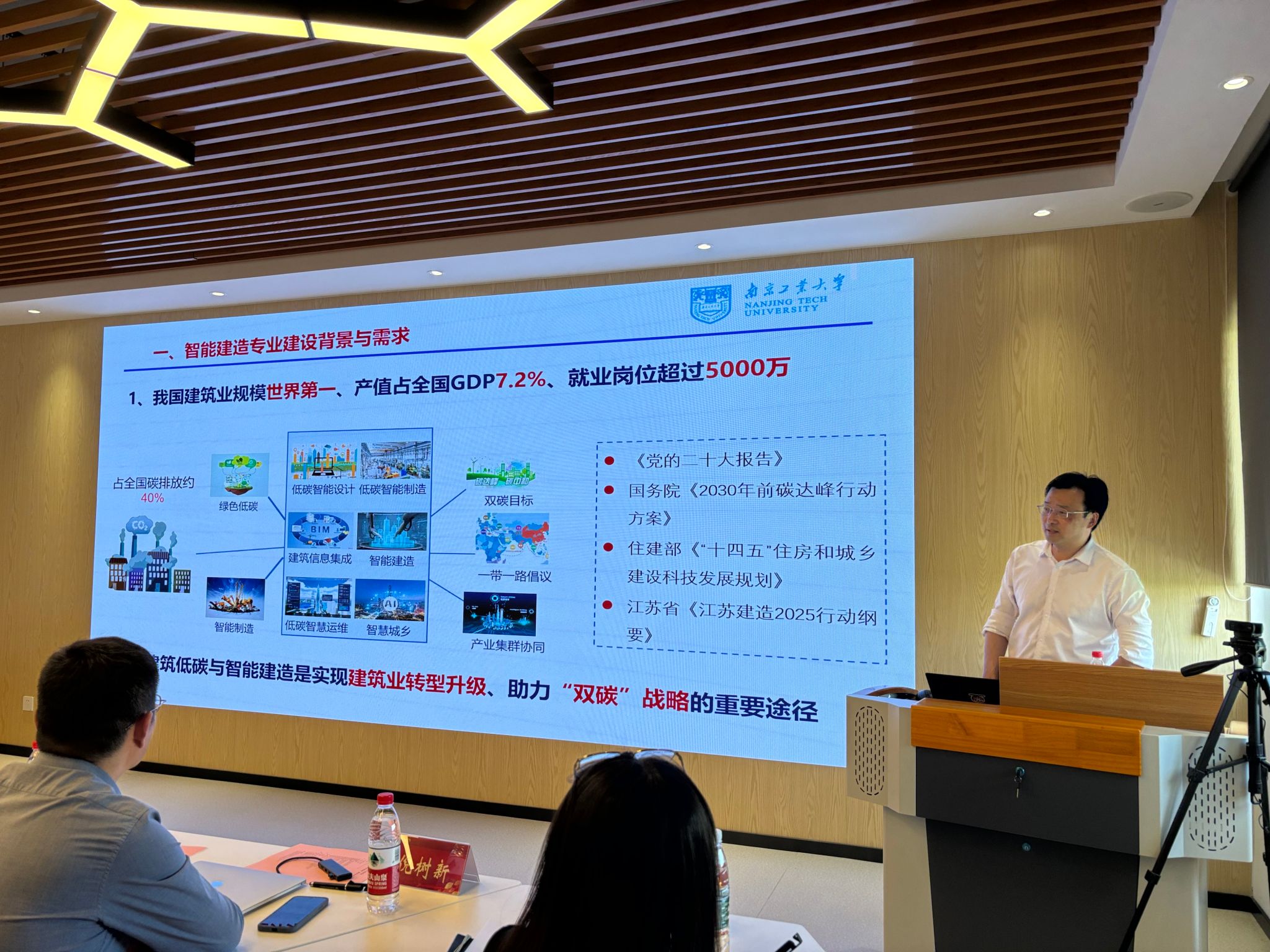 佘健俊教授作了题为《智能建造专业建设与人才培养的探索实践》的报告。他从智能建造专业建设背景与需求、专业培养方案、学生培养能力和素质要求以及智能建造专业特色等四个方面深入讲解了南京工业大学在智能建造专业建设和人才培养的实施路径、具体做法和取得的成效。他鼓励微专业应结合学校和学院专业特色开展专业创新教育、提升教学内涵,促进产教融合、科教融汇。