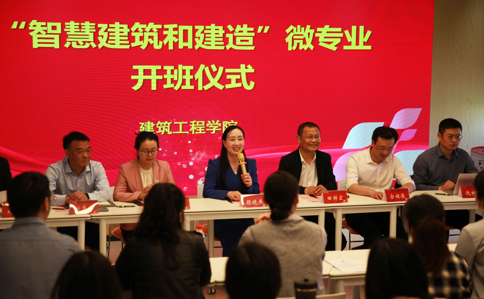 顾晓燕副校长对智慧建筑和建造微专业正式开班表示热烈祝贺。她强调,微专业在新时代人才培养改革中具有重要作用,提出了微专业建设过程中应着力聚焦的四个关键点:一要注重模式创新,微专业应实现从传统的知识传授向能力培养的深刻转变,着力提升学生利用信息技术手段解决复杂工程问题的能力;二要注重交叉融合,通过加强校际合作和校企合作,充分利用学校计算机、软件等领域的优势资源,更广泛更深入的学科交叉融合,推动新工科的发展;三要注重数字赋能,智慧建筑和建造微专业应高度重视智能技术在土建领域的应用,以更人性化、更科学、更智慧的设计和建造理念,打造更安全、更舒适、更便捷的人居环境;四要注重虚实结合,微专业应积极探索线上线下相结合的学习方式,利用在线开放课程、虚拟仿真实验项目、虚拟环境漫游技术等开展智慧教学,利用虚拟教研室等平台开展研讨活动,提高教学效率和效果。她要求,微专业任课教师应加强智慧建筑与建造前沿技术的学习交流,加强与企业的合作,建设好微专业课程,同时带动与企业的科研交流合作,实现产科教融汇,从而提升教师能力素质,培养智慧建筑和建造领域的高素质应用型复合型人才。