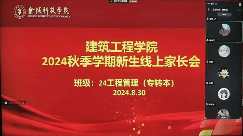 报到前,班主任及辅导员开展线上家长会,班主任杜杨进行了自我介绍和工程管理的专业介绍,更好地关注学生学业并加强家校合作。辅导员濮香玉从规章制度、宿舍安全、电信诈骗和心理健康等方面强调学生安全问题的重要性,最后介绍了新生报到当天的注意事项及流程,提前让新生熟悉校园布局,以确保报到工作的顺利进行。