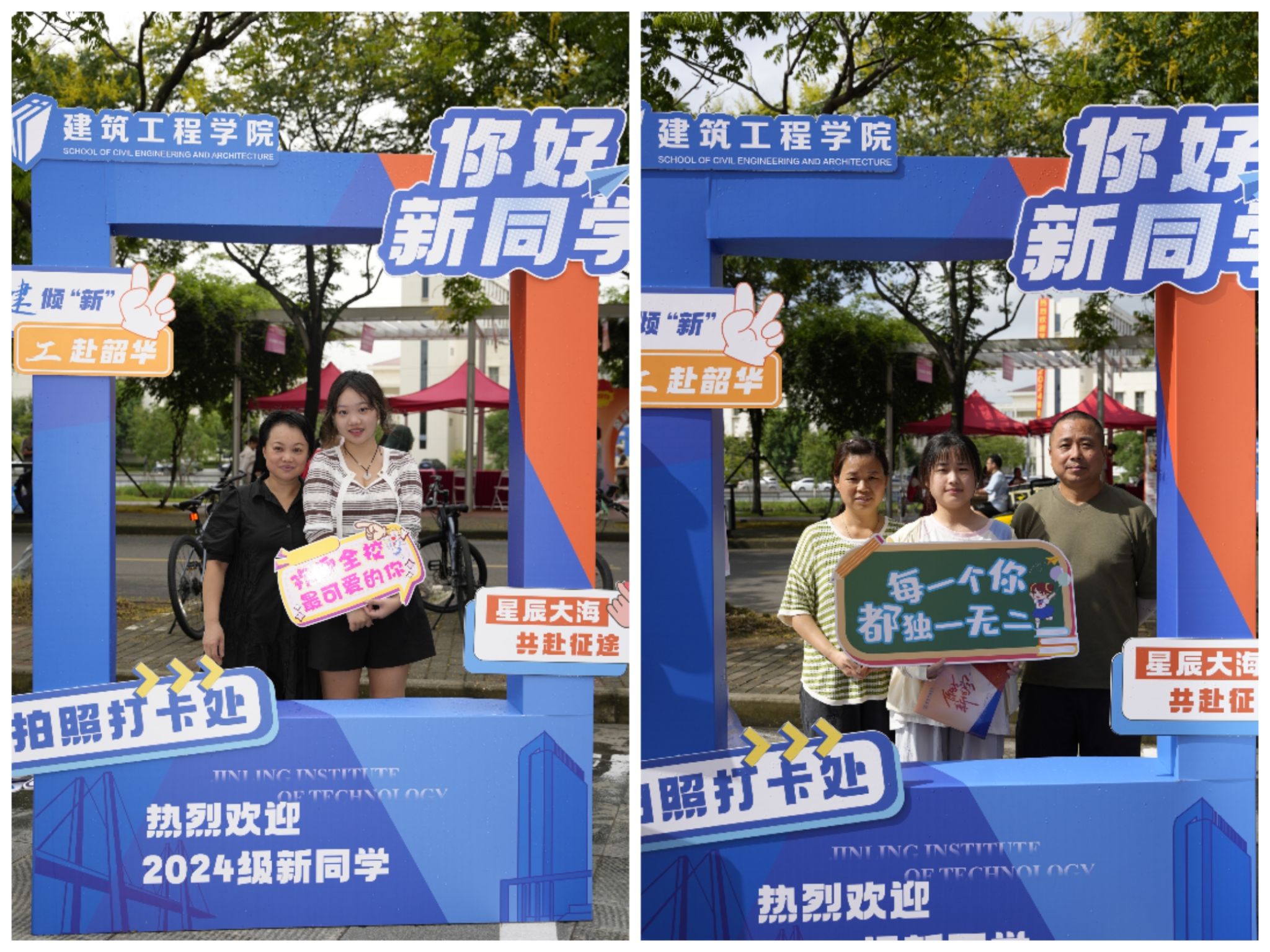 9月12日,辅导员、班主任和志愿者们早早来到迎新报到点。在迎新现场,暖心周到的志愿服务、别具特色的迎新活动、细致入微的后勤保障,为新生送去了建工学院最诚挚的祝福。在报到点,学院为每位新生定制了“你好新同学”文件袋,在文件袋中准备了建工学院学生亲自手绘的校园地图,帮助新生熟悉校园环境。此外,在迎新报到点还设置了“一‘建’倾‘新’,‘工’赴韶华”拍照打卡处,传递了对新生最诚挚的祝福与美好愿景,新生纷纷在打卡处合影留念,用相机定格青春活力的面容,每一处细节都体现了建工学院全体师生对此次迎新活动的精心筹备,表达了对2024级新生的热烈欢迎。