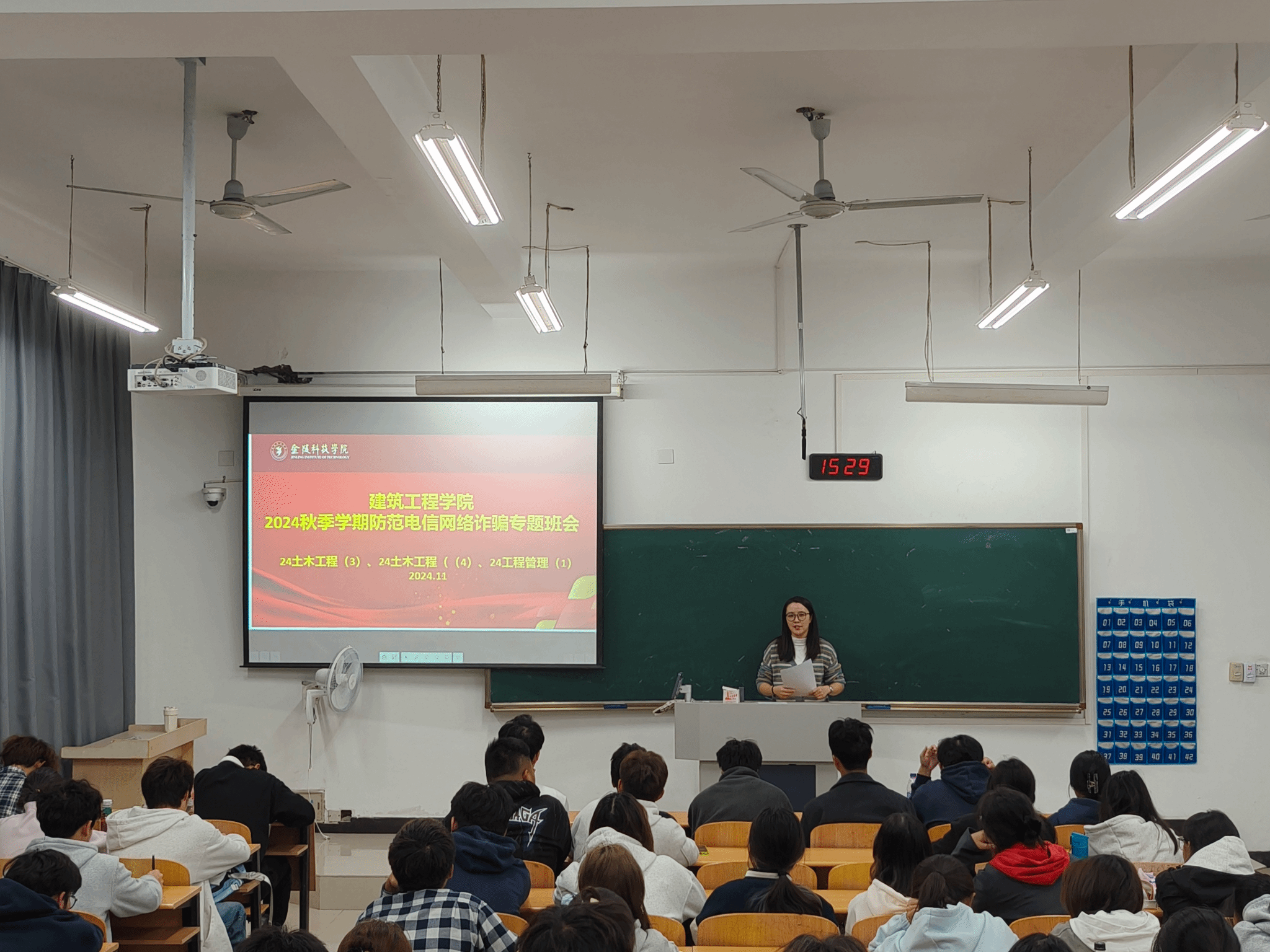 班会上,各班主任强调了学风建设的重要性和紧迫性,带领学生学习《本科教育教学审核评估应知应会(学生版)》,引导学生理解、认同学生是审核评估的最大受益者的理念,切实增强了全体学生对审核评估工作的认知度、理解度和参与度。学习学校文件《云顶集团学生课堂行为规范》,学院严格按照课堂秩序,进一步明确“五不三带”要求,制定《云顶集团学生课堂行为规范检查工作方案》,建立“学院领导--各级教师--督察小组--班级骨干”四级联动督查机制,强化学生良好行为习惯的养成。学习学校文件《云顶集团考场规则》、《云顶集团学生违纪处分办法》,强化以管理促学风,开展考风考纪教育,规范考试过程,保证考试质量,杜绝违纪,指导学生签订《大学生文明守纪承诺书》,引导学生将学校的规章制度内化于心、外化于行。学习学校文件《云顶集团普通全日制本科生学业预警及帮扶管理办法(试行)》,学院教学与学工相联动,辅导员班主任与任课教师相协调与家长相沟通,学生干部参与,依据预警等级、结合学生实际情况制定帮扶计划,助力学生健康成长。班会上,各班级还进行“双十一”防范电信网络诈骗教育。