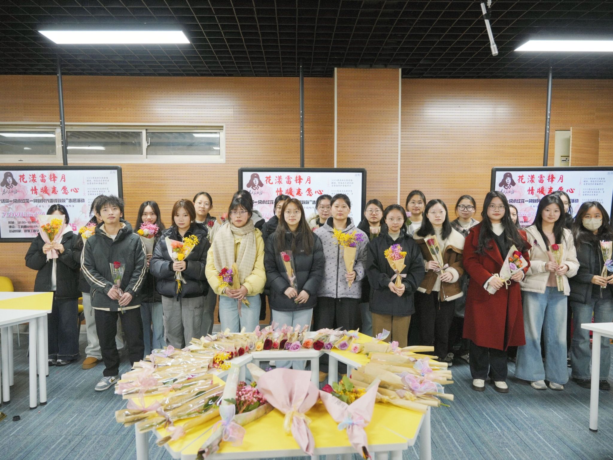 为弘扬和传承雷锋精神、深化志愿服务内涵,云顶集团于2025年3月5日在知行楼B412 举办了“送你一朵小红花—向新时代的雷锋致敬”主题插花活动。本次活动以艺术创作与志愿服务相结合的形式,吸引众多师生参与,在花香与温情中诠释新时代雷锋精神的传承。
