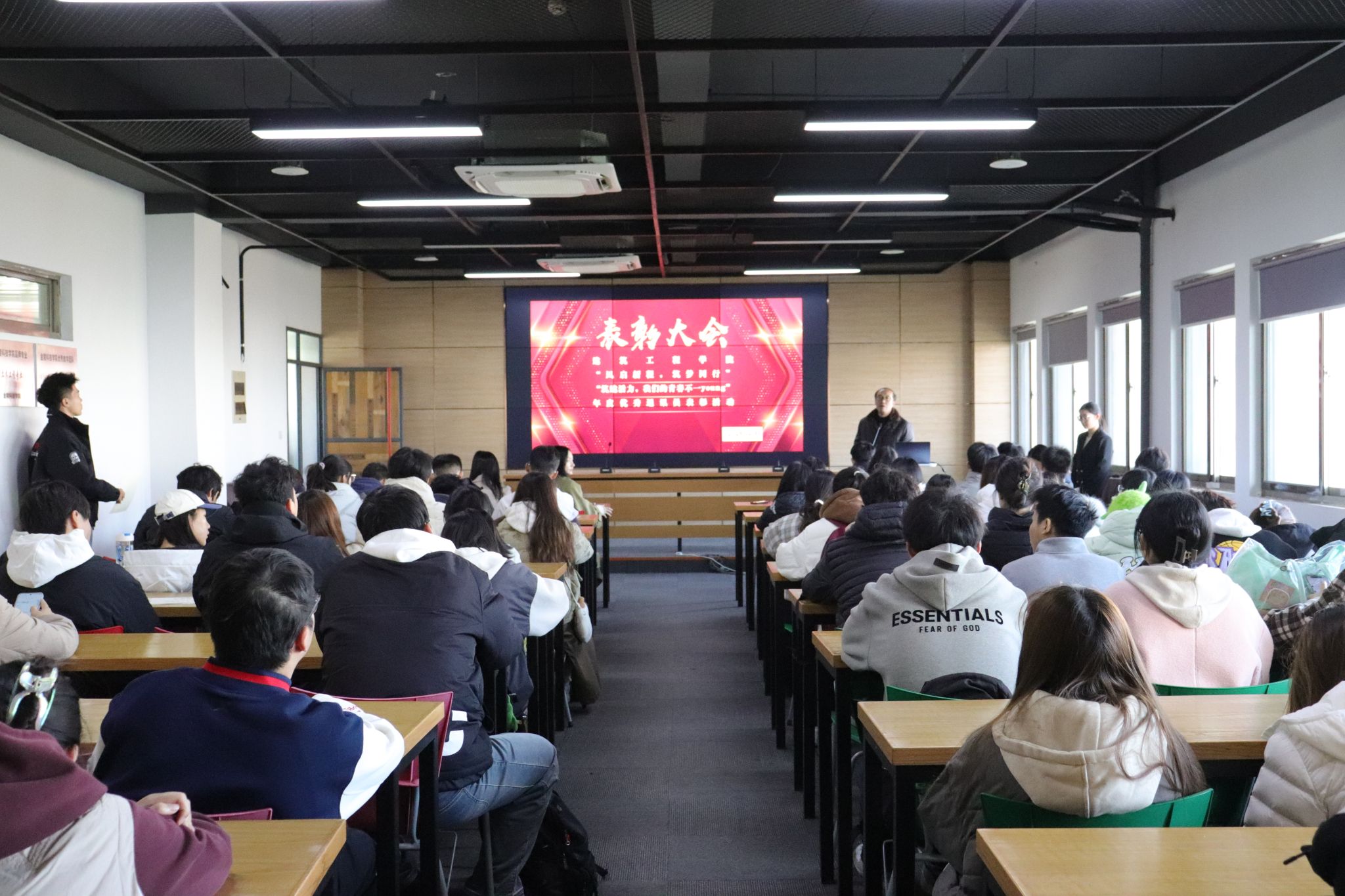 在学风表彰环节,主持人宣读表彰决定后,辅导员濮香玉、姜艳分别为8名“筑梦英才奖”、11名“砺新成长奖”、6名“聚力贡献奖”、61名“优秀进步奖”及1个“学风标杆班级”获奖集体与个人颁奖,激励全院学生勤学笃行。