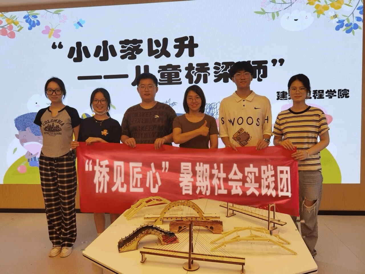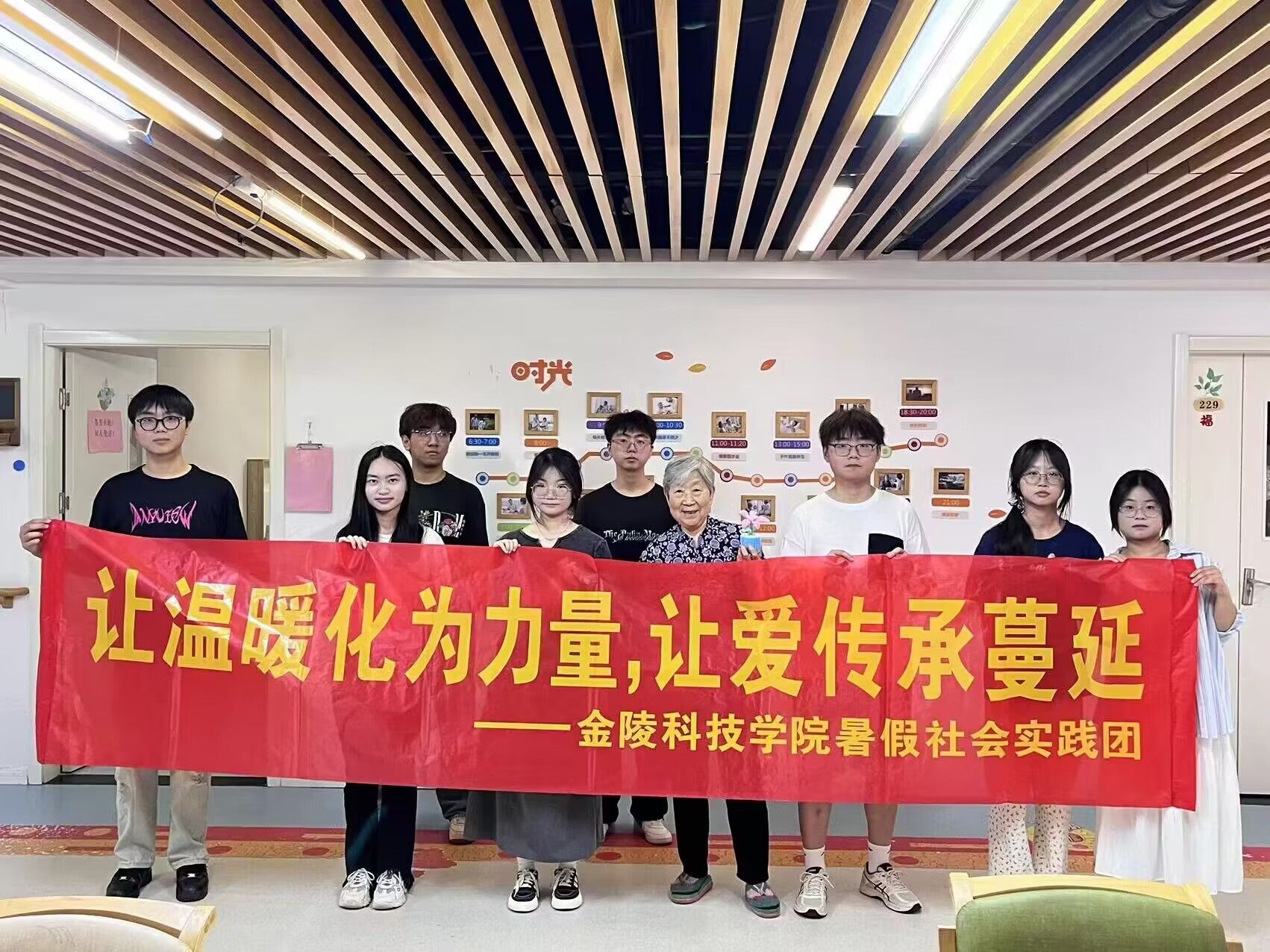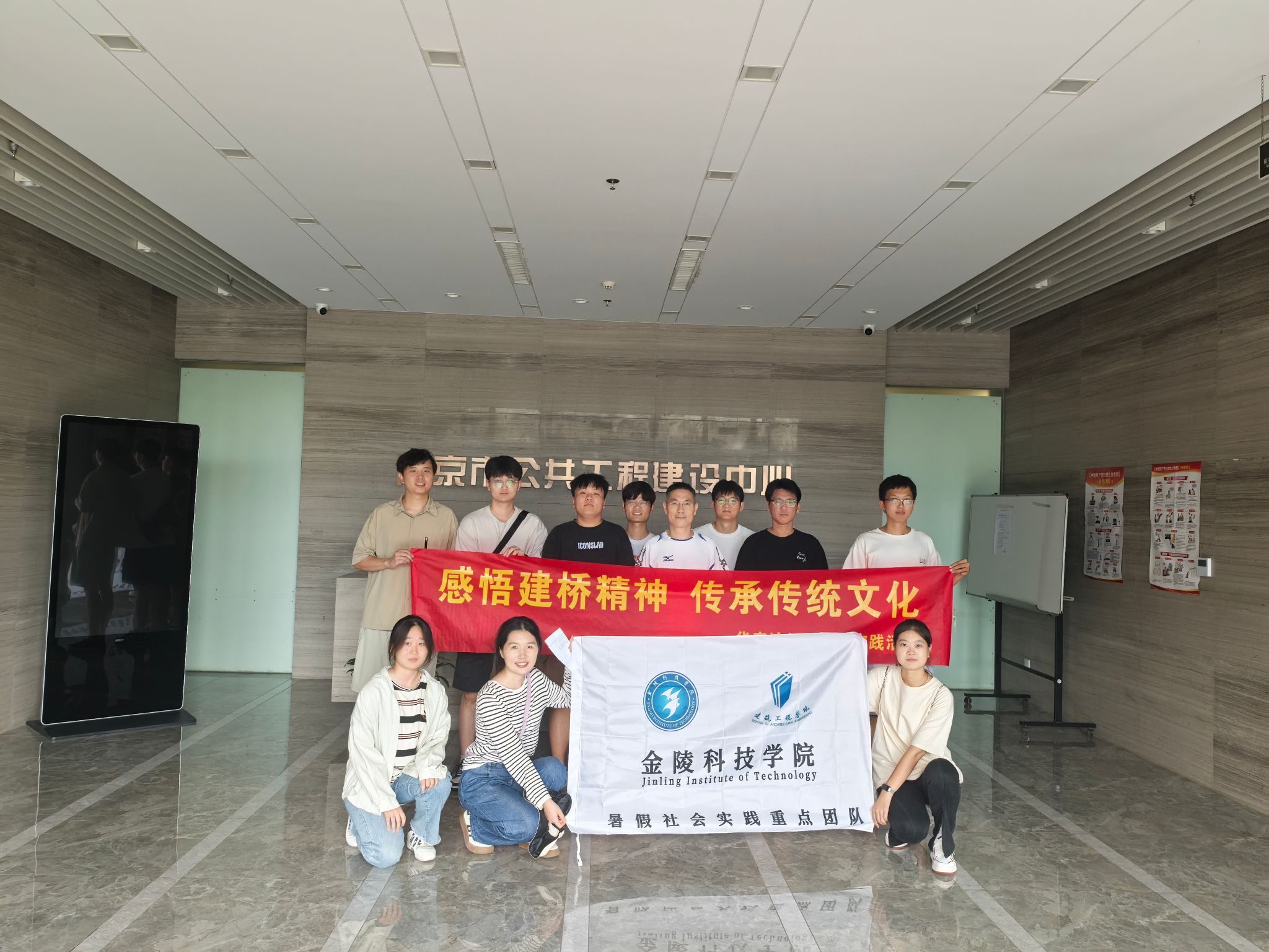 “探寻红色建筑 ,重温革命烽火”爱国主义教育实践团,带领新团员重温入团誓词,在志愿服务后来到了南京市渡江战役胜利纪念馆、徐州市淮海战役烈士纪念馆、见义勇为烈士纪念馆参观调研。另一个爱国主义社会实践团“桥见匠心”暑期社会实践团踏上桥梁的实地考察之旅,来自团队成员的板绘作品南京眼、南京大胜关大桥,摄影作品南京仙林路大桥、金沙江大桥、武汉长江大桥、和平大桥让我们不仅欣赏到现代建筑的精粹,更感受到“中国大桥精神”的传承与发展。“让温暖化为力量,让爱传承蔓延”公益志愿团赴南京市鼓楼区慧享福长者照护之家开展一次深刻而温馨的心灵之旅的暑期社会实践活动。“支援之心系农村,奉献之情暖八方”公益志愿团赴启东市近海镇公益村探访并调研当地的社会环保问题及农村水污染问题,提出多项合理措施。“筑梦青春,‘乡’约上庄 ”乡村振兴团于南京市江宁区横溪街道上庄村集结,寻访新四军第一支队指挥部旧址,实地调研上庄村绿色发展之路。“笃行致远 惟实励新”科技创新团基于“双碳”背景,以建筑中雨水资源的收集与利用为研究对象,赴南京图书馆,南通大剧院等地开展社会实践活动,他们相互交流启发、积累成果并尝试专利成果转化。“榜样引航 逐梦前行”校友寻访团来到了毕业生就创业单位,用一问一答方式记录下优秀的创业校友和就业校友的故事和建议,在寻访中感受到了榜样的力量与金科精神的传承。