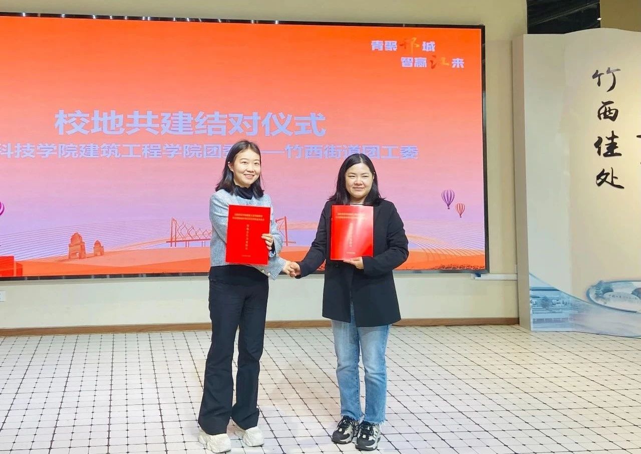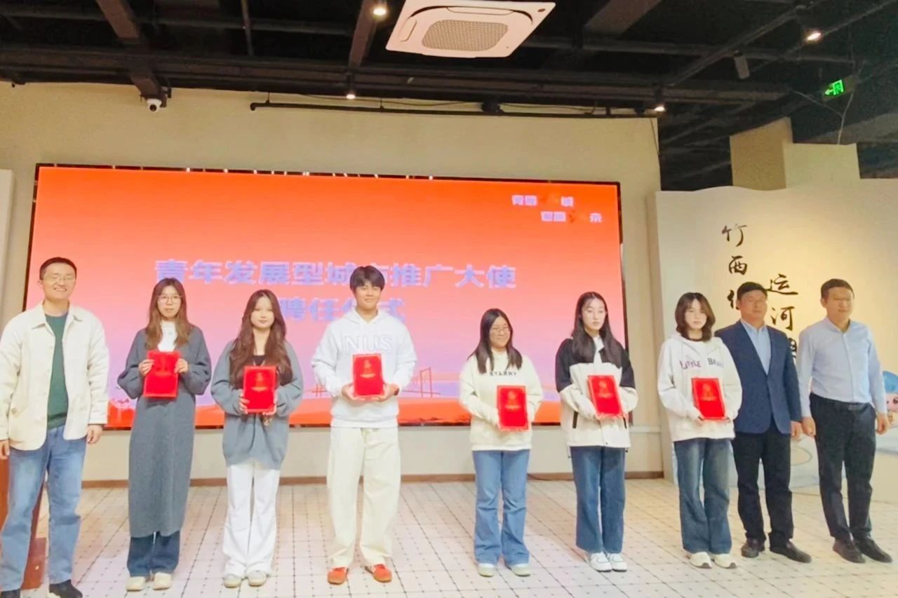 邗江团区委书记周舟等为学生代表颁发了青年发展型城市推广大使聘书。会上还揭牌了云顶集团就业创业实习实践基地,竹西街道团工委与学院团总支签署了共青团校地共建协议。