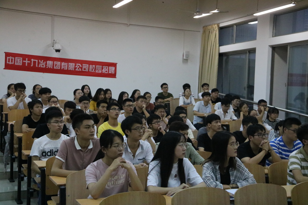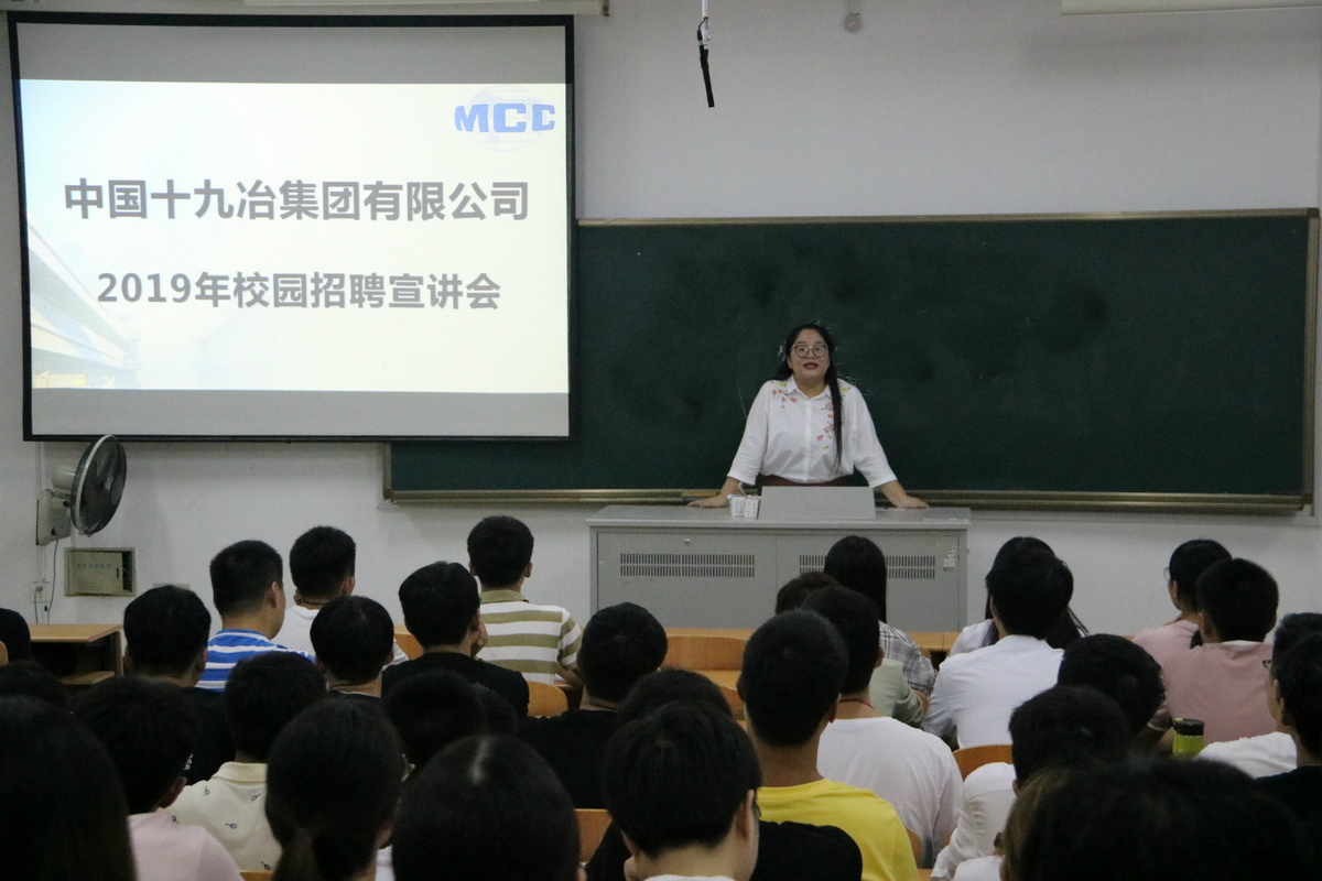 中国十九冶集团有限公司成立于1966年,是中国唯一独立连续承担过从矿山开采到型、板材冶金全流程施工的大型综合建筑企业,为世界500强、沪港同步上市公司中国中冶全资子公司。公司拥有冶金、建筑、市政公用工程施工总承包三个特级资质,拥有工程设计、工程勘察等八个甲级资质等,在公路、市政公用工程、机电工程,钢结构、桥梁等领域具有强大的施工能力。业务遍及国内30个省市自治区和20余个国家和地区。宣讲会由中国十九冶集团有限公司南京分公司招聘主管李新婷主讲,就业干事鲍飞豹主持,2019届毕业生近100人参加。