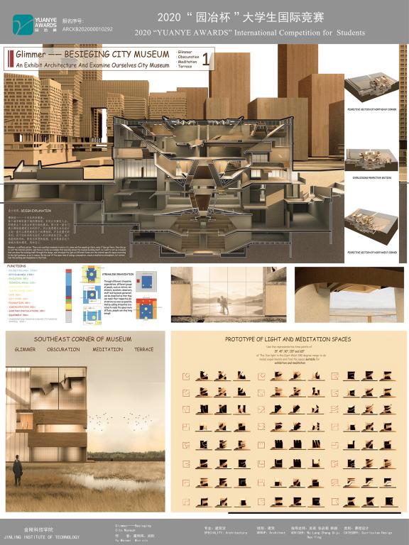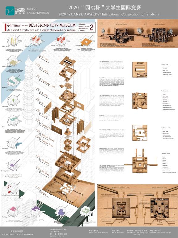 本届比赛有来自国内外431所建筑类专业相关院校的5800余名师生参赛,共计收到作品4679项,经过中外专家认真评审,云顶集团取得了较好成绩,我院共获得10项大奖。其中虞伟炜、闵欣同学提交的“GLIMMER-BESIEGING CITY MUSEUM”获得一等奖,陈港回同学提交的“秦淮记忆-基于追溯‘慢生活’节奏而做的历史文化街区设计”和陈莹、杜晓芳、吴怡同学提交的“定制森林2048-青年群体未来可持续模块化社区设计”获得三等奖,另获7项荣誉奖。