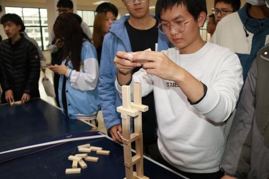 在隔空取物的比拼中,有的队伍轻松完成,有的经历了数次失败后才成功完成。这一项比拼考验的是大家对物理知识的了解与运用。通过这项比赛,同学们对物理知识在日常生活中的应用有了更深的认识。