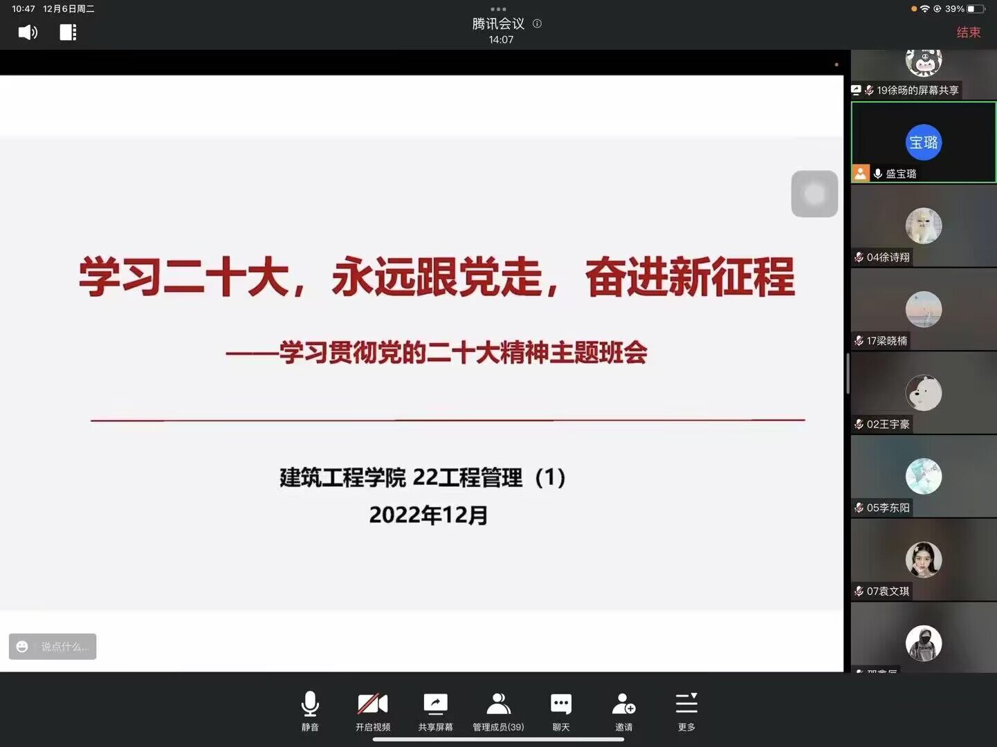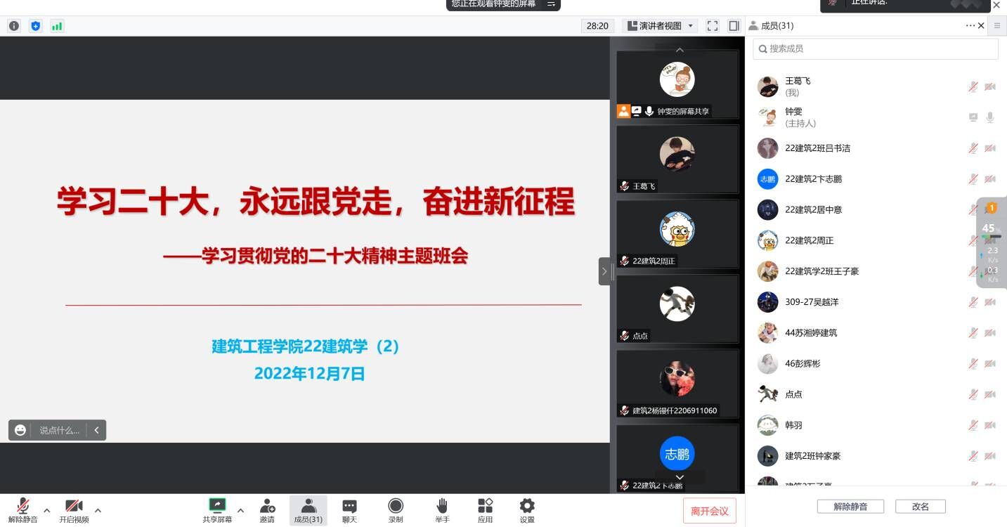 本次班会加深了同学们对二十大的了解,知晓了时代的使命、党的追求,坚定了吾辈青年在新时代背景下共建社会主义现代化强国的理想信念。