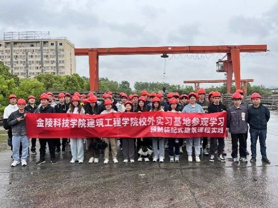 2023年4月23日上午,2020级土木工程结构方向学生在细雨蒙蒙的早晨参观学院实训基地——“南京大地建设集团”下属-预制装配式工厂(江宁分厂)。根据厂结构负责人诸国政高级工程师的介绍,该厂为大地集团最悠久厂区之一,生产的预制构件种类齐全,包括:预制柱、预制梁、预制叠合板和预制楼梯等构件。江宁分厂为南京本地及周边建筑工业化建设贡献了相当大的力量,见证了南京地区预制装配式建筑从无到有到繁荣发展的全历程。