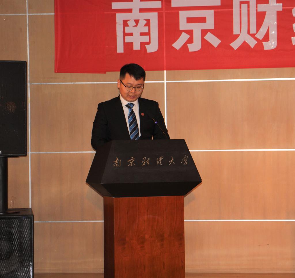 南京邮电大学研究生会执行主席曹玮桐同学致辞。她对新冠肺炎疫情期间南京财经大学研究生会举办的一系列活动表示充分肯定,并表达了未来两校合作的美好期许。江苏省学生联合会驻会执行主席俞特同学致辞。他表示,今年是全国深化学生会(研究生会)组织改革意见实施的关键之年,作为学生联合组织,希望南财研究生会在学校建设和服务学生过程中进一步发挥积极作用,树立榜样。