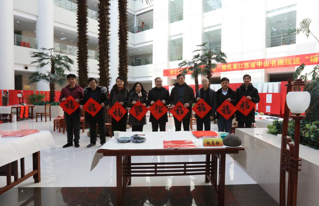 校长程永波、党委副书记温潘亚(正校级)出席此次活动并与书法家们合影留念。参加此次书写春联活动的有校党委常委、副校长乔均,江苏省书法家协会副主席、民革江苏省中山书画院院长、艺术设计学院教授仇高驰,中国书法家协会会员、南京书法家协会理事高瑞生,中国书法家协会会员、民革江苏省书画院常务理事王建强,江苏省楹联研究会副秘书长、江苏省中山书画院理事秦敏杰,校工会主席、教职工书画摄影协会副会长冯玉川,教职工书画摄影协会副会长李龙生、秘书长蒋世玉以及协会成员龚月红、赵颖慧等。