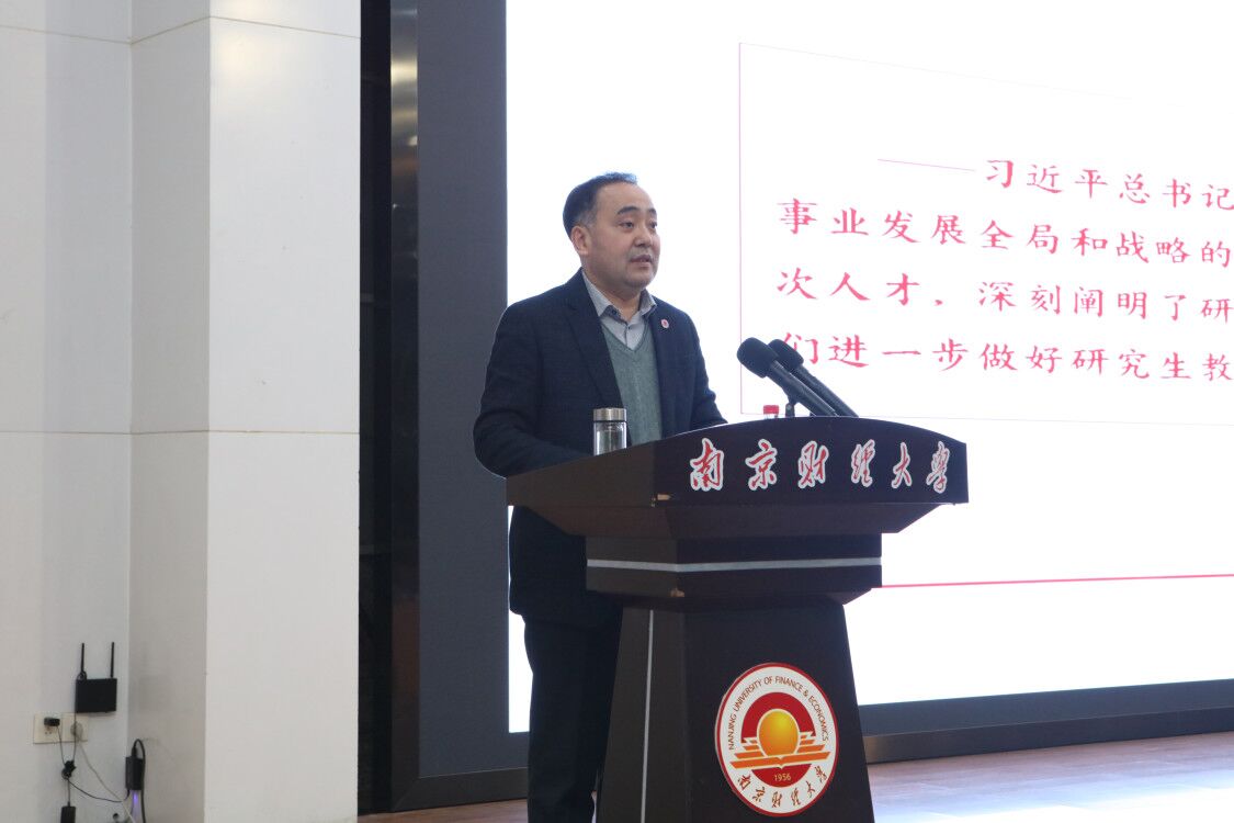 会上,党委常委、副校长李群传达了全国研究生教育会议和全省研究生教育会议精神。党委研究生工作部和研究生院负责同志汇报了学校研究生教育改革发展的总体思路及具体举措。粮食和物资学院院长曹宝明,食品科学与工程学院院长方勇,经济学院院长朱红根,研究生导师代表、MBA教育中心副主任秦伟平,研究生代表、研究生会主席马群进行了大会交流发言。
