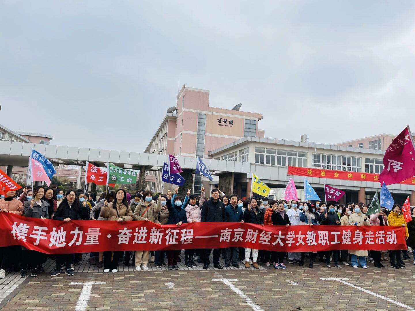 教学楼广场彩旗招展,人头攒动,热闹非凡。随着出发口令的下达,参加活动的女教职工们按预定路线依次出发。初春的仙林处处洋溢着勃勃生机,改造一新的羊山湖公园更是景色宜人。女教职工们沿着文苑路一路向东,到达羊山湖公园后沿中心彩虹大道向东行进,走到彩虹大道最东头,再沿湖边步道返回,全程接近六公里。大家用灿烂的笑容、矫健的步伐,充分展示了南财女教职工们靓丽、自信的风采。