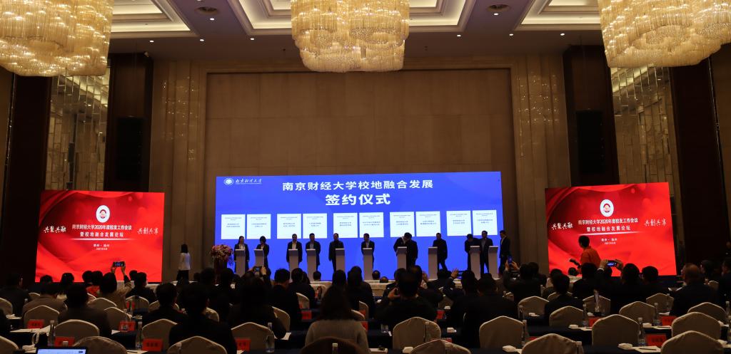 校地融合发展签约仪式环节,国际经贸学院与中兴华会计师事务所(特殊普通合伙)泰州分所,公共管理学院与江苏万杨物业管理服务有限公司,信息工程学院与江苏盛源电器有限公司,艺术设计学院与江苏丰尚智能科技有限公司,财政与税务学院与江苏张驰轮毂制造有限公司等十家单位正式签约,开拓校地合作新局面。