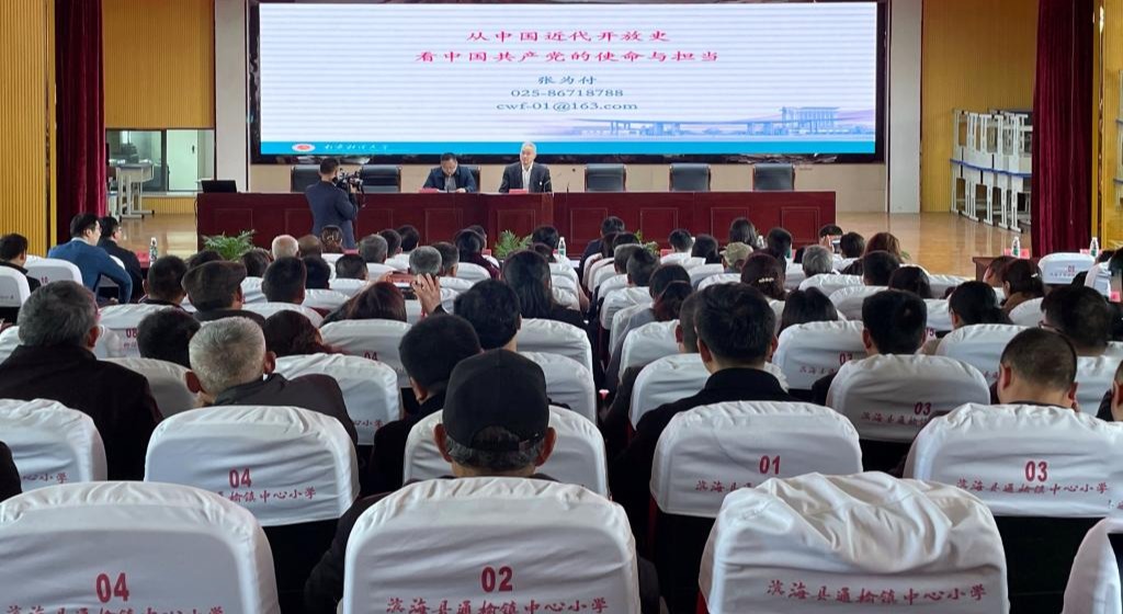 4月25日,校党委常委、副校长张为付带领学生处、后勤保障处、基建处、粮食和物资学院、外国语学院等20名教师党员代表赴盐城市滨海县通榆镇开展党史学习教育宣讲。宣讲报告会由通榆镇党委书记陈春雷主持。