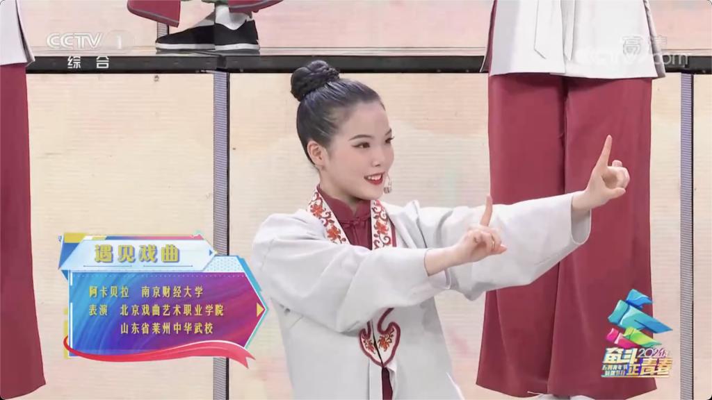 此次活动中,由我校艺术教育中心指导的大学生艺术团采用无伴奏阿卡贝拉表演唱的演出形式,突破传统合唱的观念与限制,融人声演唱、和声技巧、戏剧表现、舞蹈走位为一体,和北京京剧院、上海越剧院、广东粤剧院的青年戏曲演员共同完成《遇见戏曲》节目,一同向全国观众呈现了中华传统戏曲艺术在青年一代学子中继承和发扬的优秀成果,展示了我校青年学子的创造力。