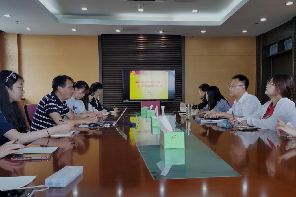 党课、思政课结束后,李群副校长与学生处招办宣传助理团学生代表、校团委青年媒体中心学生代表进行了座谈,就同学们比较关注的公众号点击量、青年话语体系、表情包的使用等问题进行了互动交流。