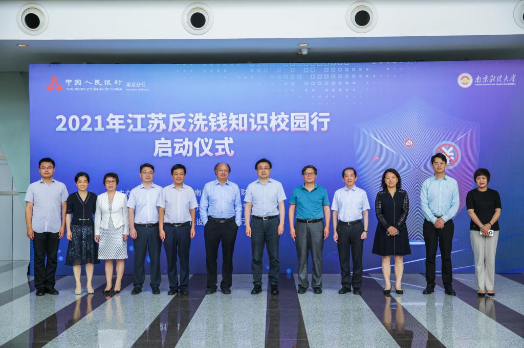 为深入贯彻落实《国务院办公厅关于完善反洗钱、反恐怖融资、反逃税监管体制机制的意见》和防范化解金融风险的工作要求,加强正面宣传和舆论引导,营造预防打击洗钱犯罪的良好校园氛围,6月10日,2021年江苏反洗钱知识校园行启动仪式在我校仙林校区图书馆报告厅举行。党委常委、副校长华仁海,人民银行南京分行副行长贾拓,中国建设银行江苏省分行合规官张焱出席活动,我校部分师生参加活动,活动由江苏广电集团主持人许必甜主持。