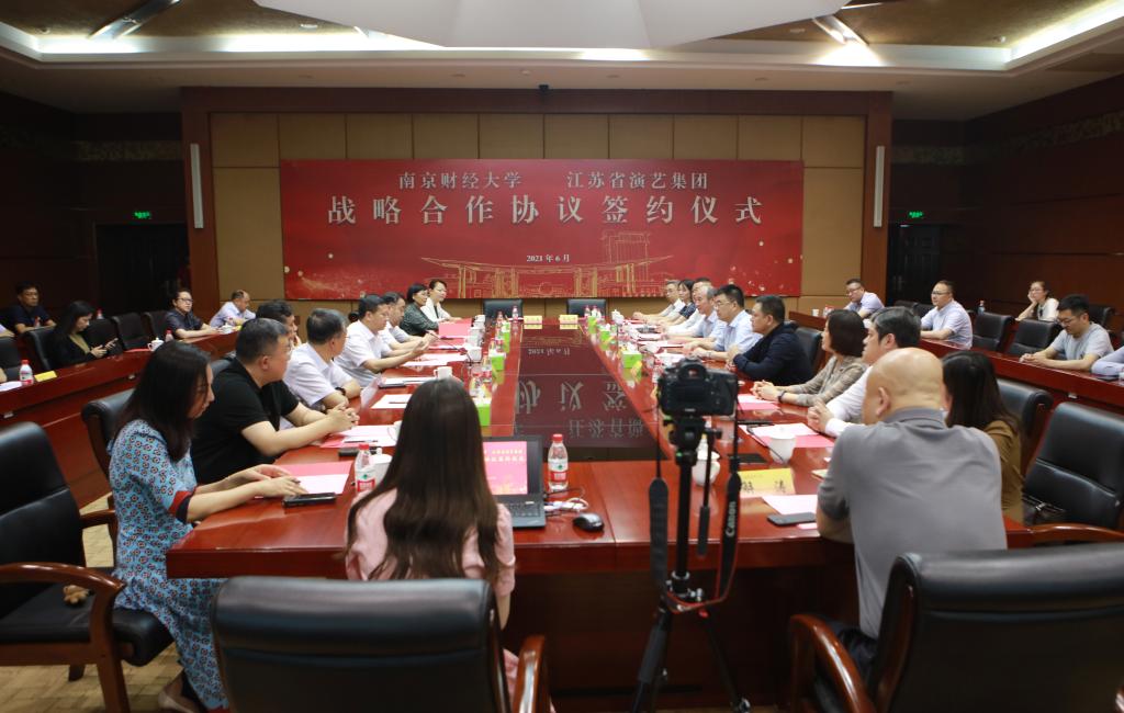 随后,柯军总经理和程永波校长代表双方在《南京财经大学、江苏省演艺集团战略合作协议》上签字,与会领导一同见证协议签字并合影留念。