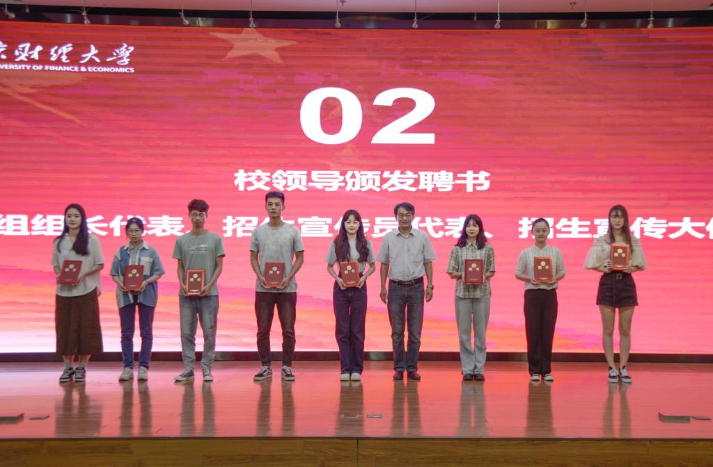 会上,李群副校长为招生组组长代表、招生宣传员代表、招生宣传大使代表颁发聘书。