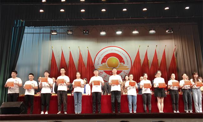 高永东副书记宣读《关于表彰南京财经大学红山学院2021届“优秀毕业生”的决定》。红山学院副院长王晓庆宣读《关于同意郭余豪等2164名同学毕业的决定》。优秀毕业生代表及毕业生代表上台领取获奖证书和毕业证书。