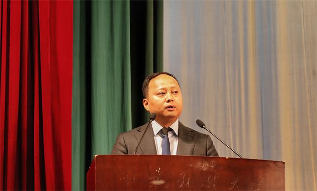 桥头校区管委会主任、红山学院党委书记鞠明富讲授“毕业党课”