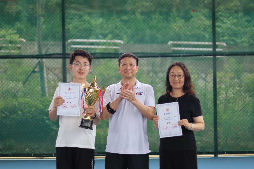 为提高比赛参与度和观赏性,本次比赛设教工组和嘉宾组,教工组采用随机抽签方式,以混双形式进行。比赛采用1盘平局决胜制,平分无占先,6平抢7网球竞赛规则。参赛队员同台竞技展风采,相互切磋提技能,经过小组循环赛和淘汰赛两个阶段紧张、激烈的角逐,教工组李骏(外国语学院)和房建涌(学生)获得冠军,丁华仙(校工会)和赵峰(体育部)获得亚军,赵敏(会计学院)和王建立(国有资产管理处)、杨立(体育部)和蒋涛(会计学院)并列获得季军,嘉宾组吴小平和刘征宇、李世收和黄佳璐分获冠亚军。