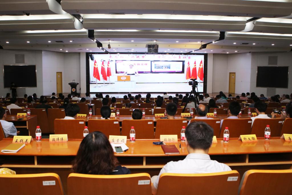 为庆祝中国共产党成立100周年,根据学校党史学习教育工作安排,7月2日下午,校党委书记张利民在仙林校区图书馆一楼报告厅为师生讲授了题为“汲取党史智慧,强化政治建设,谱写新时代学校高质量发展的新篇章”的党史学习教育专题党课。省委教育工委党史学习教育派出第一指导组副组长、省教育厅二级巡视员赵晓群同志和指导组成员、省教育国际交流服务中心项目主管汪侃出席党课。全体党委委员、纪委委员,校党史学习教育领导小组、工作小组及办公室成员,全体党员中层以上领导干部,全体基层党支部书记,特约监察员代表,师生代表参加党课学习。