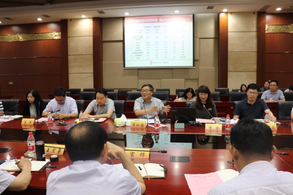 科研处副处长杜修立通报了国家级课题中期检查总体情况。科研处副处长肖玉杰对青年学者科研能力提升培训计划作了布置。副处长杨文建对《南京财经大学科研经费管理办法》《南京财经大学纵向科研经费预算调整管理规定》的修订制定进行了解读,对科技服务合同规范重要性及2020年国家基金绩效评估进行了说明。会议还通报了截至目前各学院科研经费到账情况,对协同创新中心等科研机构进行了调度。