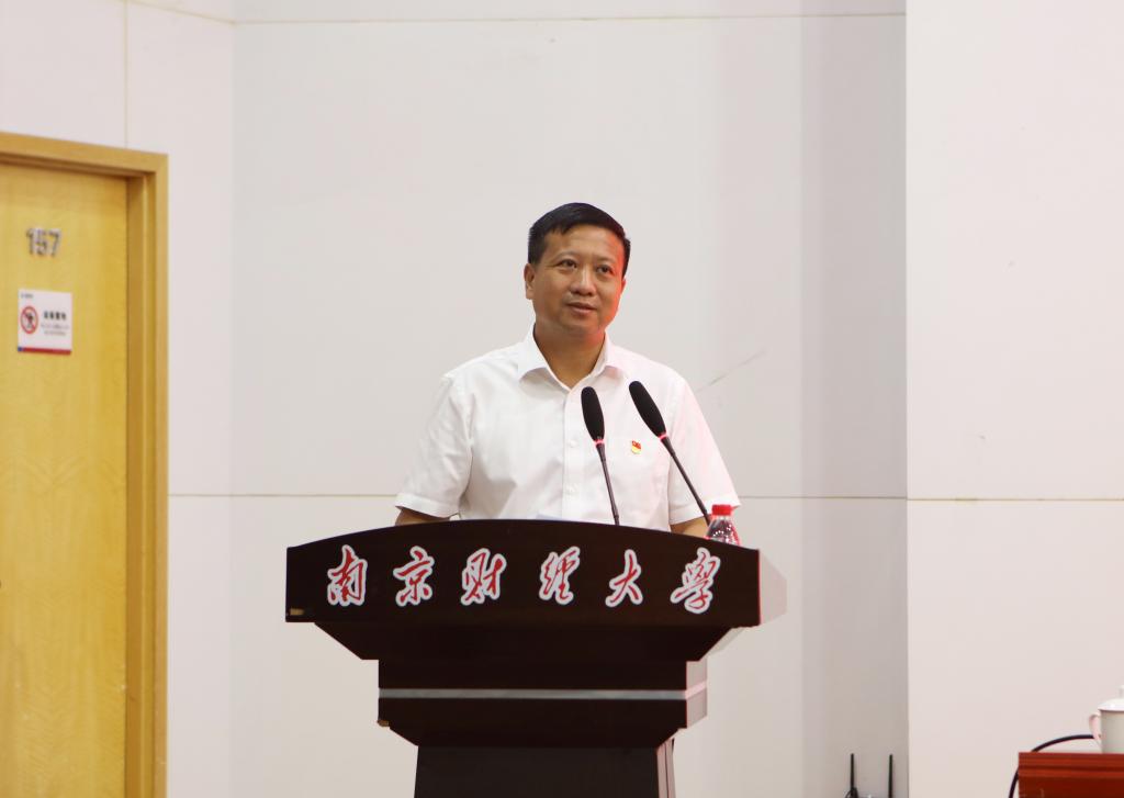 9月4日上午,我校举办党史学习教育宣讲报告会,邀请省委党史学习教育领导小组成员,省社科联党组书记、常务副主席张新科教授作党史学习教育辅导报告。会议设主会场与分会场,分会场以视频直播的形式进行。全体在宁校领导、党史学习教育领导小组成员和中层干部分别在仙林校区图书馆一楼报告厅、行政楼二楼报告厅和工科楼二楼会议室聆听报告。报告会由校党委书记、校党史学习教育领导小组组长张利民主持。