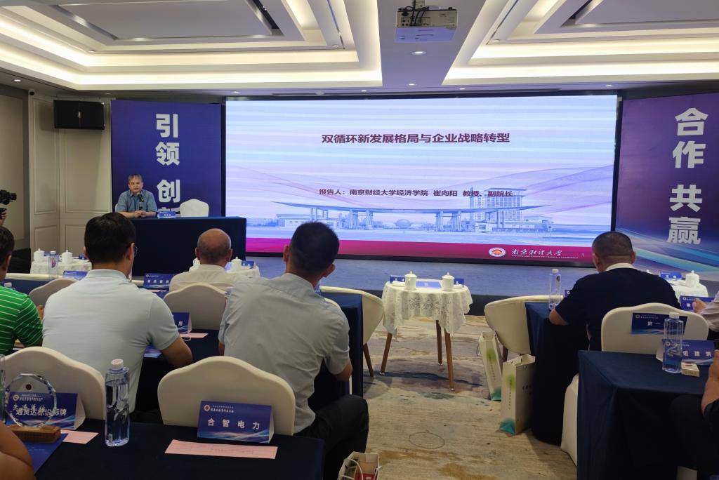 授牌仪式结束后,无党派人士、经济学院副院长崔向阳教授以“双循环新发展格局与企业战略转型”为题,应邀为百余位企业负责人作专题辅导讲座,并进行了互动交流。