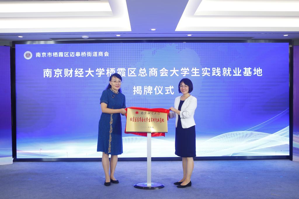 9月24日下午,我校与栖霞区委统战部联合举行“南京财经大学栖霞区总商会大学生实践就业基地”揭牌仪式。校党委常委、统战部部长吕戎,栖霞区委常委、统战部部长章晶共同为实践就业基地揭牌。相关学院领导,栖霞区委统战部、区工商联、迈皋桥街道等相关部门负责人,地方商会理事等约120余人参加了活动。