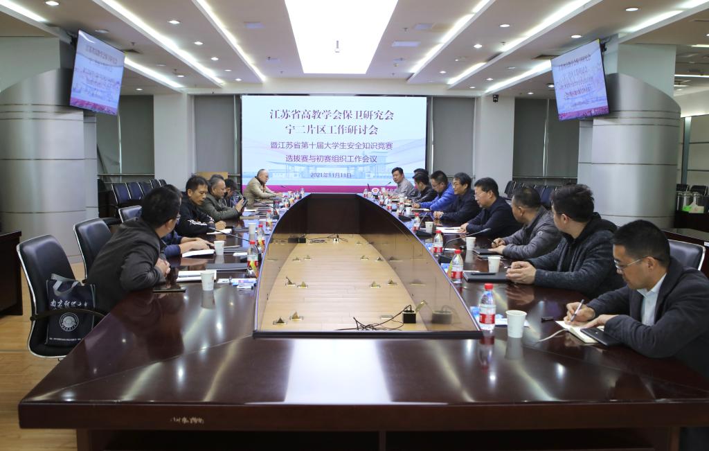 11月11日下午,江苏省高教学会保卫研究会宁二片区工作研讨会在我校仙林校区行政楼16楼会议室举行。党委常委、副校长李群出席研讨会并致辞,来自南京大学、南京师范大学、南京理工大学、南京农业大学、南京邮电大学、南京林业大学、南京中医药大学、南京财经大学、南京体育学院、南京森林警察学院、南京特殊教育师范学院、南京工业职业技术大学、南京理工大学紫金学院、南京审计大学金审学院、南京信息职业技术学院、钟山职业技术学院等16所高校保卫处处长参加会议。会议由我校保卫处处长卢苇主持。