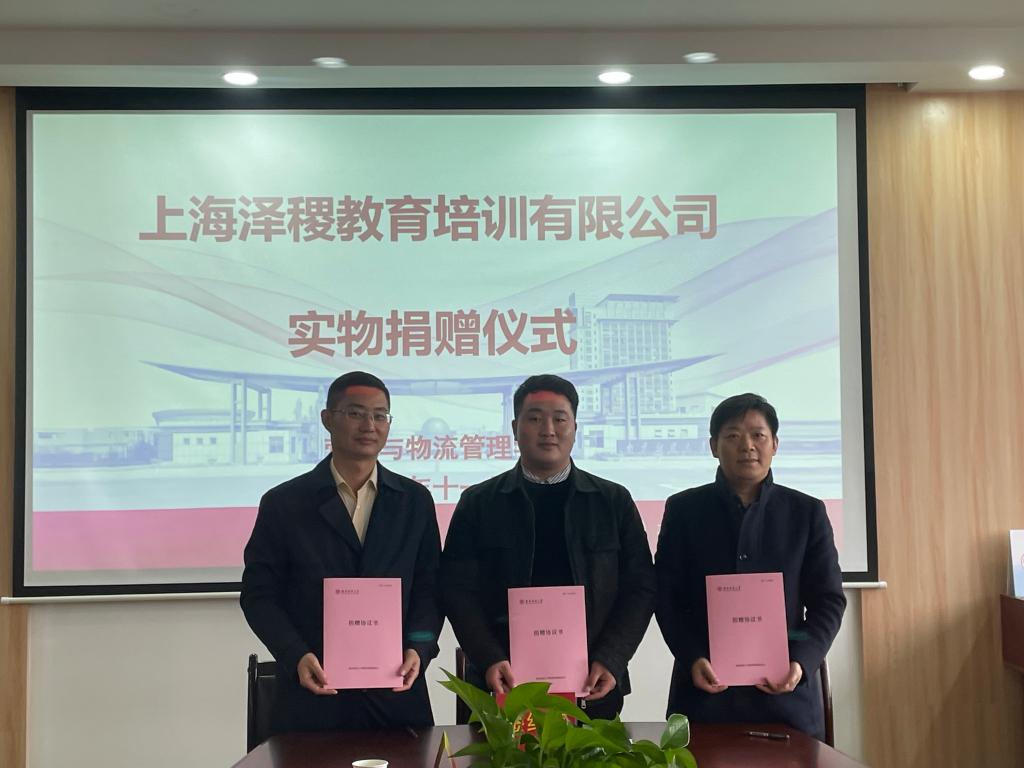 捐赠仪式上,上海泽稷教育培训有限公司、校教育发展基金会和营销与物流管理学院三方代表共同签署捐赠协议,黄建元总会计师代表学校向捐赠方颁发了捐赠证书。