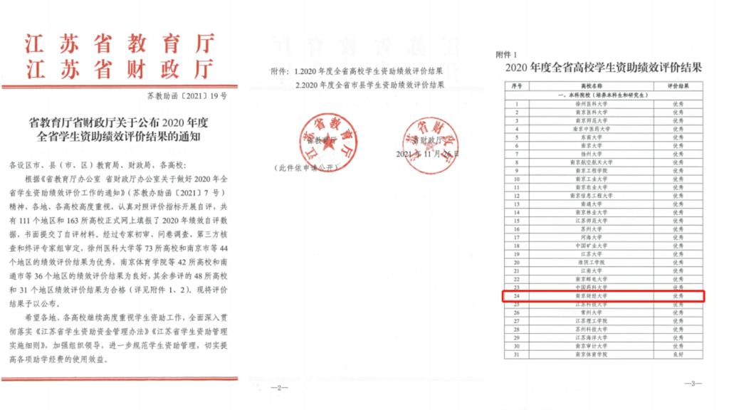 近日,省教育厅、省财政厅下发了《关于公布2020年度全省学生资助绩效评价结果的通知》(苏教助函〔2021〕19号),我校获评2020年全省学生资助绩效考核评价优秀单位。按照省学生资助管理中心的要求,学校积极贯彻执行各项资助政策和文件精神,落实政策制度、加强队伍建设、夯实基础管理、提升理论修养、创新工作方法,取得了明显成效。这是我校连续第十一年获此殊荣。