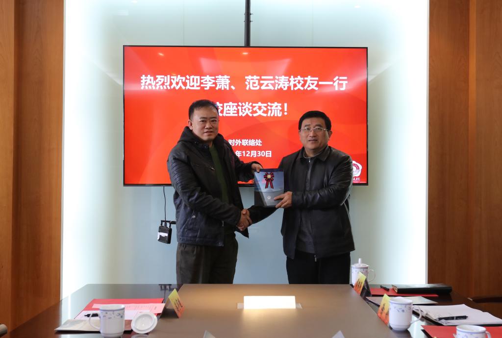 乔均副校长向多年来始终关心和支持母校事业发展的李萧等校友表示衷心感谢,详细介绍了学校在人才培养、学科建设、科学研究、社会服务等方面取得的成就,重点阐述了学校建设江苏高水平大学、获批博士学位授予单位、“十四五”规划及“文体增色”特色工程建设等情况。同时,就我校校友工作的组织建设、活动开展、校企合作等方面与校友们进行了深入探讨,并期待校友们进一步加强与母校的沟通与交流,与母校共同发展。乔均副校长向李萧校友颁发了“校友徽章”。