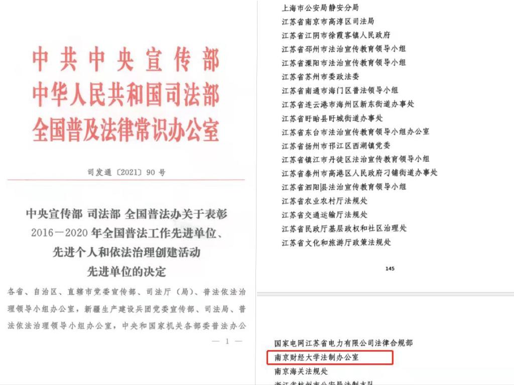 近日,中共中央宣传部、中华人民共和国司法部、全国普及法律常识办公室公布了《关于表彰2016-2020年全国普法工作先进单位、先进个人和依法治理创建活动先进单位》的决定,我校法制办公室获评全省唯一一家高校依法治理创建活动先进单位。