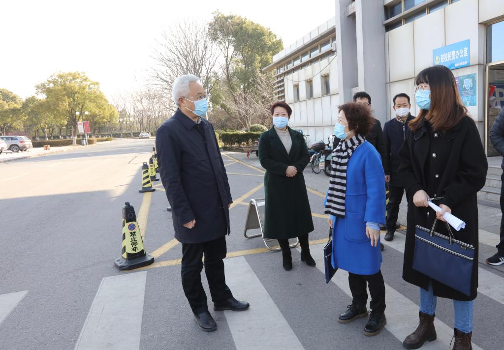 2月27日,江苏省卫生监督所学校卫生监督处处长冯向明一行来我校督导检查疫情防控工作。党委常委、副校长张为付,党校办、学生处、研工部、保卫处、后勤基建处等相关部门负责同志陪同检查。
