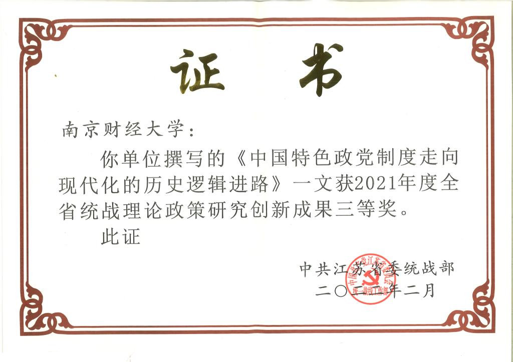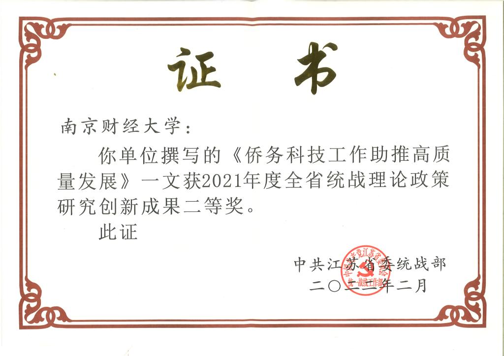其中,由党委统战部吕戎主持完成的《侨务科技工作助推高质量发展》获2021年度全省统战理论政策研究创新成果二等奖,由马克思主义学院王遐见主持完成的《中国特色政党制度走向现代化的历史逻辑进路》获三等奖。