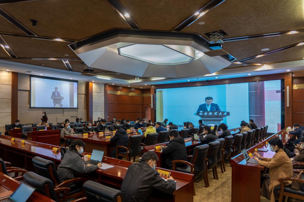 张利民书记就学校学习贯彻习近平总书记在全国两会期间重要讲话和全国两会精神,推动学校事业发展提出三点要求:一是要提高政治站位,学深悟透习近平总书记两会期间重要讲话精神。要精心组织习近平总书记两会期间重要讲话精神的学习宣传活动,在全校上下迅速掀起学习宣传的热潮。各级领导干部要带头学,先学一步,深学一层,作好表率。各单位要采取理论学习中心组学习、党员学习日等多种形式,组织广大师生员工深入学习,做到全面覆盖、人人知晓、入脑入心。通过深入学习,准确把握“五个必由之路”“五个战略性的有利条件”的重大论断,捍卫“两个确立”,增强“四个意识”、坚定“四个自信”、做到“两个维护”。二是要狠抓工作落实,推动学校高质量发展取得新成效。要切实增强责任感、使命感和紧迫感,把思想和行动统一到习近平总书记重要讲话精神上来,统一到党和国家的决策部署上来,将两会精神落实到办学治校的实际行动中,落实到学校改革发展的生动实践上。要将贯彻落实两会精神与巩固拓展党史学习教育成果相结合,与落实立德树人根本任务相结合,与实施“十四五”规划和推进高水平大学建设的各项重点任务相结合,与统筹推进疫情防控和学校事业发展相结合,与解决民生实际问题相结合,坚定信心,保持定力,一着不让推动学校高质量发展各项工作落地见效,把学校发展的巨大潜力和强大动能充分释放出来。三是要坚持以人为本,汇聚起建设高水平财经大学的强大合力。要落实好“以学生为中心、以教师为主体”的理念,想师生所想、急师生所盼、办师生所需,用党员干部的“辛苦指数”换取师生员工的“幸福指数”。要切实改进调查研究,广泛听取师生员工的意见建议,努力使各项工作更加符合实际、符合师生意愿。要坚持领导干部“常态化下沉一线”制度,建立健全为民办实事长效机制,用心用情用力持续排查解决突出民生问题,在解决一桩桩实际问题中不断增强师生员工的获得感、幸福感、安全感。要坚持依法治校,把依规依纪依法要求落实到学校各项工作全过程。要团结带领全校师生员工凝心聚力、艰苦奋斗,共同把南京财经大学的事业发展推向前进,为我省坚决扛起“争当表率、争做示范、走在前列”光荣使命、谱写“强富美高”新江苏现代化建设新篇章贡献更大智慧和力量,以实际行动和优异成绩迎接党的二十大胜利召开。