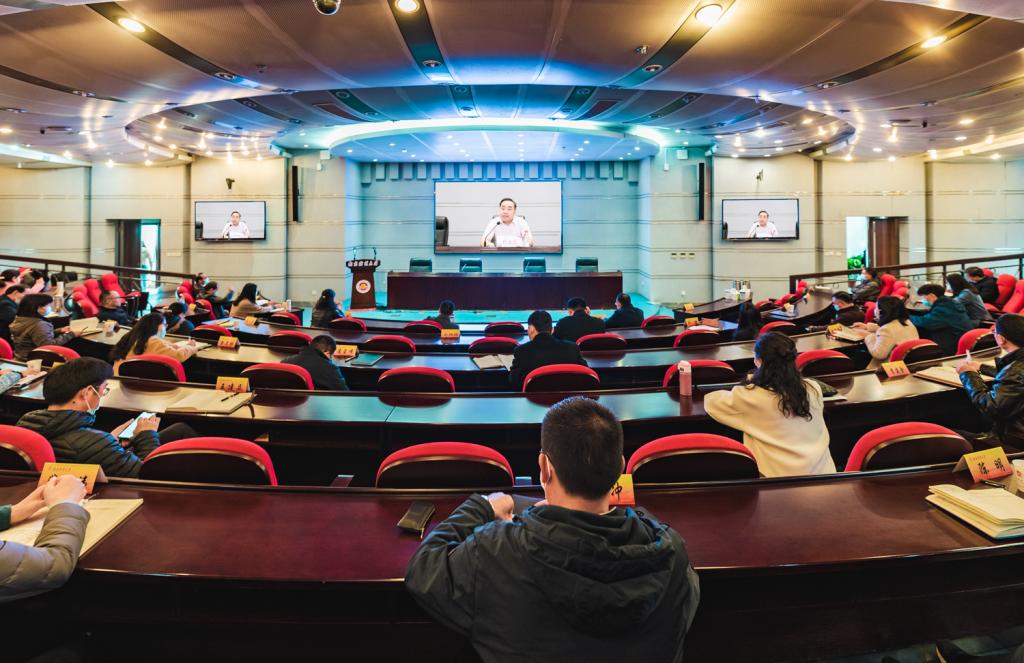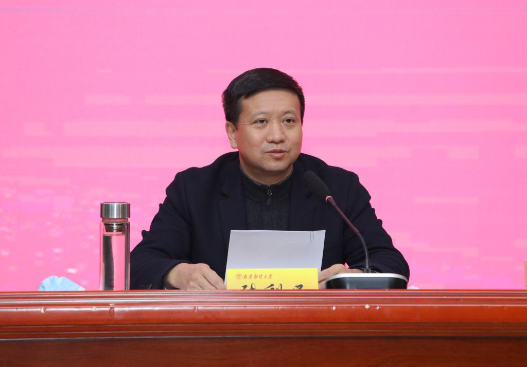 3月18日,我校召开2022年全国两会精神学习报告会,传达学习习近平总书记在全国两会期间重要讲话和全国两会精神。会议设主会场与分会场,分会场以视频直播的形式进行。全体校领导,全体党委委员、纪委委员,全体中层领导干部分别在仙林校区图书馆一楼报告厅、行政楼二楼报告厅和工科楼二楼会议室参加会议。会议由校党委书记张利民主持。