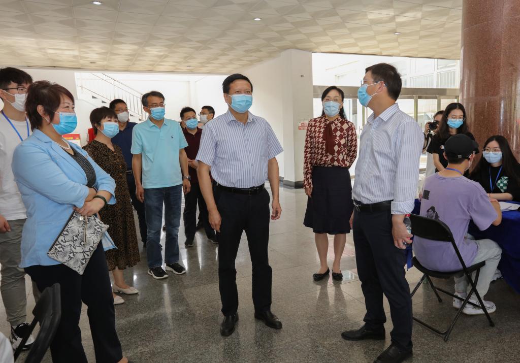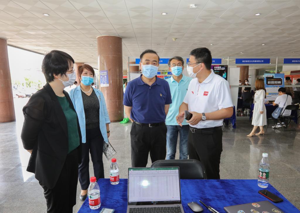 5月31日下午,我校“访企拓岗促就业”校友企业就业实习双选会、“企业进校园,同心促就业”专场招聘会在仙林校区博观楼一楼大厅举办。校党委书记张利民,校长程永波,党委副书记(正校级)温潘亚,党委常委、副校长时现,党委常委、纪委书记李茜,党委常委、总会计师黄建元,党委常委、副校长邱伟芬,党委常委、副校长李群,副校级领导朱琴华深入现场,与企业代表和学生亲切交谈。栖霞区委统战部副部长、区工商联党组书记王俊一行莅临指导。各学院负责人和毕业班辅导员现场指导学生参加双选。2022届在宁毕业生、部分非毕业班学生参加招聘会。