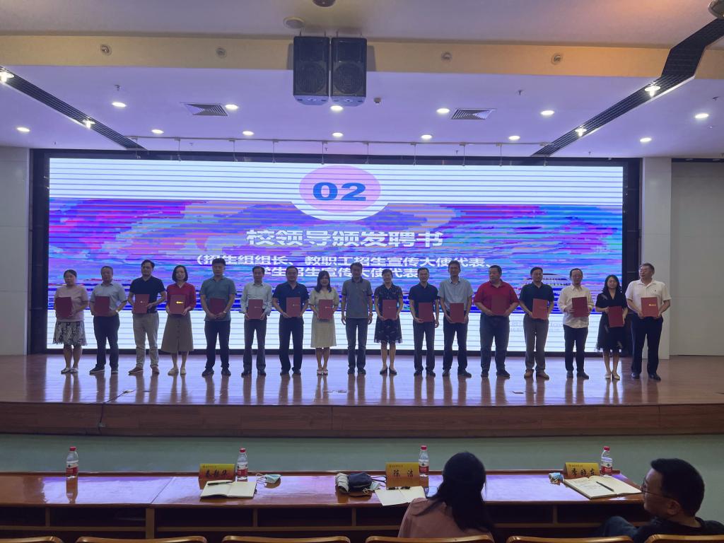 会上,李群副校长为招生组组长、教职工“招生宣传大使”代表、学生“招生宣传大使”代表颁发聘书。
